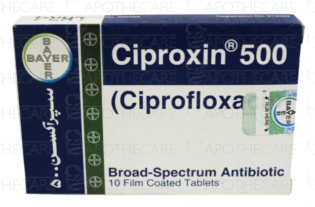 Product Name: Ciproxin Tab 500mg 10'sProduct Form: TabletPack Size: 10'sMarketed By: Bayer Health Care Pvt LtdGeneric Category: Quinolones Anti-BacterialIngredients: Ciprofloxacin