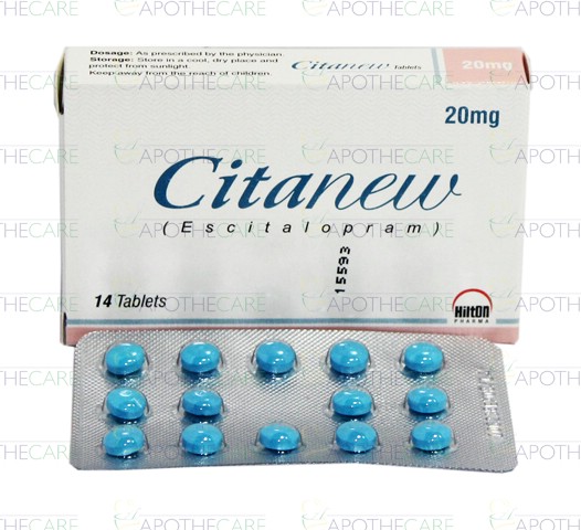 Product Name: Citanew Tab 20mg 14'sProduct Form: TabletsPack Size: 14'sMarketed By: Hilton Pharma (Pvt) Ltd.Generic Category: Anti-Depressant Ingredients: Escitalopram