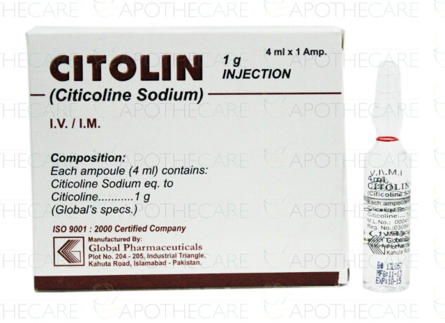 Product Name: Citolin IV/IM Inj 1gm 1Ampx4mlProduct Form: InjectionPack Size: 1Ampx4mlMarketed By: GLOBAL PHARMAGeneric Category: PsychostimulantIngredients: Citicoline Sodium