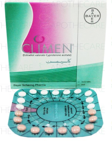Product Name: Climen Tab 21'sProduct Form: TabletPack Size: 21'sMarketed By: Bayer Health Care Pvt LtdGeneric Category: Hormonal ProductsIngredients: Estradiol Valerate 2mg,Cyproterone Acetate 1mg