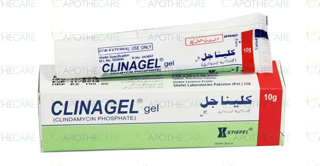 Product Name: Clinagel Gel 1% 10gmProduct Form: GelPack Size: 10gmMarketed By: GLAXOSMITHKLINE Generic Category: Anti-BacterialIngredients: Clindamycin Phosphate