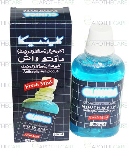 Product Name: Clinica Mouth wash 300mlProduct Form: Mouth WashPack Size: 300mlMarketed By: Platinum Pharmaceuticals (Pvt) LtdGeneric Category: Oral HygieneIngredients: Chlorhexidine