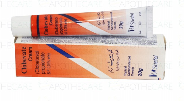 Product Name: Clobevate Cream 0.05% 20gmProduct Form: CreamPack Size: 20gmMarketed By: GLAXOSMITHKLINE Generic Category: Corticosteroid Ingredients: Clobetasol Propionate