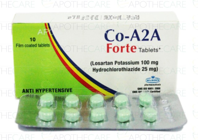 Product Form: TabletsPack Size: 10'sMarketed By: WILSON'S PHARMACEUTICALSGeneric Category: Anti-HypertensiveIngredients: Losartan Potassium 100mg, Hydrochlorothiazide 25mg