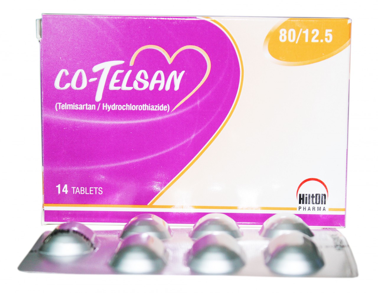 Product Name: Co-Telsan Tab 80mg/12.5mg 14'sProduct Form: TabletsPack Size: 14'sMarketed By: Hilton Pharma (Pvt) Ltd.Generic Category: Anti-HypertensiveIngredients: Telmisartan 80mg,Hydrochlorothiazide 12.5mg