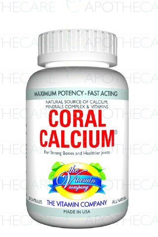 Product Name: Coral Calcium Cap 20'sProduct Form: CapsulesPack Size: 20'sMarketed By: The Vitamin CompanyGeneric Category: Nutritional Supplement Ingredients: Natural Coral Calcium – 500