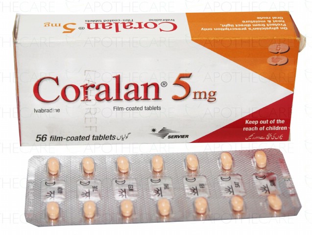 Product Name: Coralan Tab 5mg 56'sProduct Form: TabletsPack Size: 56'sMarketed By: Servier PharmaceuticalsGeneric Category: Anti-AnginalIngredients: Ivabradine