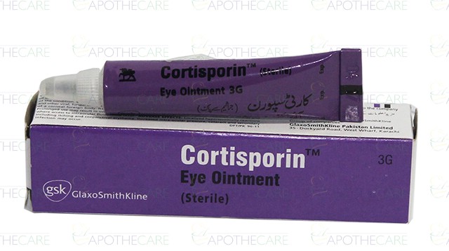 Product Name: Cortisporin Eye Oint 3gmProduct Form: OintmentPack Size: 3gmMarketed By: Glaxosmithkline Pakistan LimitedGeneric Category: Corticosteroid + Anti-InfectiveIngredients: Polymyxin B (Sulphate) 5000IU/g, Neomycin 3400IU/g, Bacitracin 400IU/g, Hydrocortisone 10mg/g
