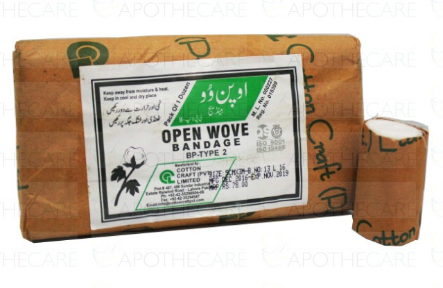 Product Name: Cotton Bandage 5cmx3m 1'sProduct Form: Open Wove Bandage BP-Type 2Pack Size: 1'sMarketed By: COTTON CRAFT (PVT) LTDGeneric Category: Surgical Products
