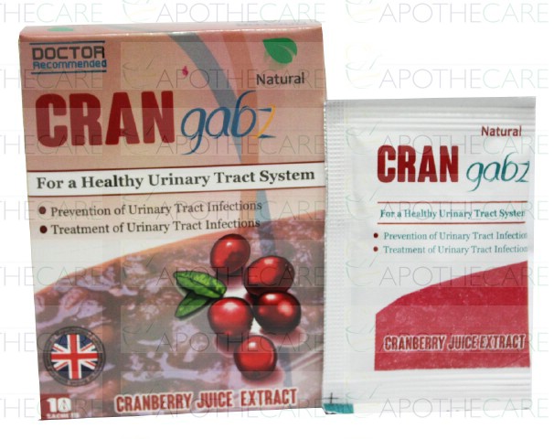 "Product Name: Crangabz Cranberry Flavour Sachet 10'sProduct Form: SachetPack Size: 10'sGeneric Category: Herbal PreparationIngredients: Each Sachet (Approx.): Cranberry Extract – 250mg "