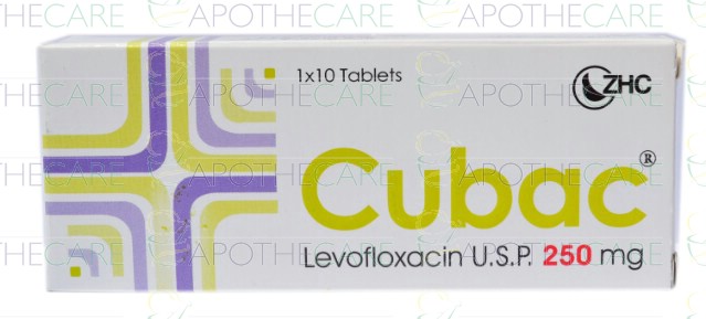 Product Name: Cubac Tab 250mg 1x10's (Zaka Health)Product Form: TabletsPack Size: 1x10'sMarketed By: Zaka HealthcareGeneric Category: Quinolone Anti-BacterialIngredients: Levofloxacin