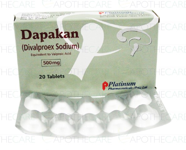 Product Name: Dapakan Tab 500mg 10'sProduct Form: TabletPack Size: 10'sMarketed By: Platinum Pharmaceuticals (Pvt) LtdGeneric Category: Anti-EpilepticIngredients: Divalproex Sodium