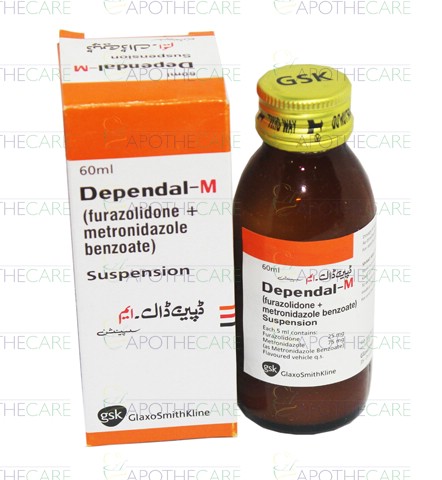 Product Name: Dependal-M Susp 60mlProduct Form: SuspensionPack Size: 60mlMarketed By: Glaxosmithkline Pakistan LimitedGeneric Category: Anti-AmoebicIngredients: Each 5ml contains: Metronidazole 75mg, Furazolidone 25mg