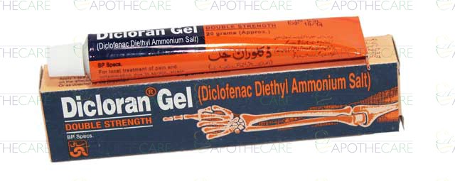 Product Name: Dicloran Gel 20gProduct Form: GelPack Size: 20gMarketed By: SAMI PHARMACEUTICALSGeneric Category: NSAIDIngredients: Diclofenac Diethyl Ammonium