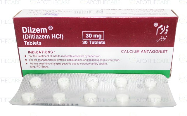 Product Name: DILZEM Tab 30mg 30'sProduct Form: TabletsPack Size: 30'sMarketed By: PFIZER PAKISTANGeneric Category: Anti-hypertensiveIngredients: DILTIAZEM HCL