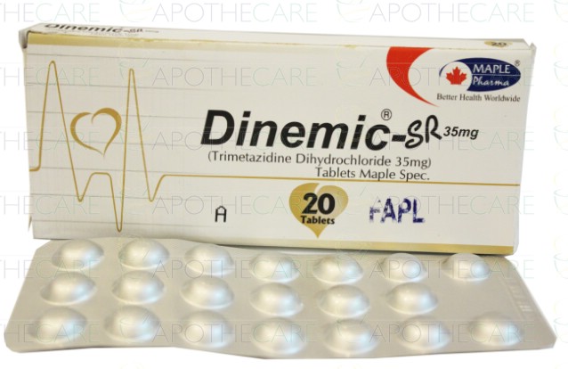 Product Name: Dinemic SR Tab 35mg 20'sProduct Form: TabletsPack Size: 20'sMarketed By: Maple Pharmaceutical (Pvt) LtdGeneric Category: Cardiac TherapyIngredients: Trimetazidine