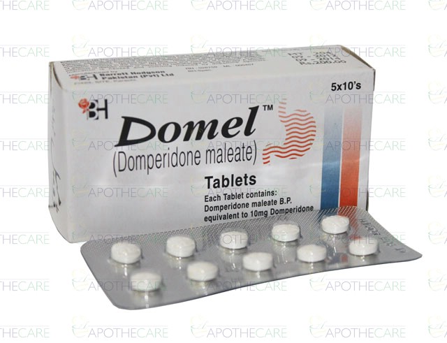 Product Name: Domel Tab 10mg 5x10'sProduct Form: TabletsPack Size: 5x10'sMarketed By: BARRETT HODGSON PAKISTAN (PVT) LTDGeneric Category: GastroprokineticIngredients: Domperidone Maleate
