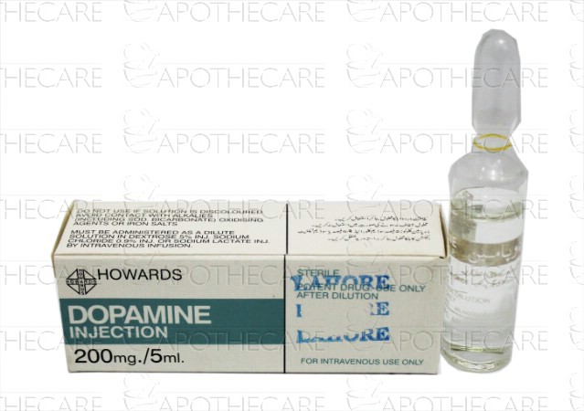 Product Name: Dopamine Inj 200mg 1Ampx5mlProduct Form: InjectionPack Size: 1Ampx5mlMarketed By: Lahore Chemical & Pharmaceutical Works (Pvt) LtdGeneric Category: Cardiac StimulantIngredients: Dopamine