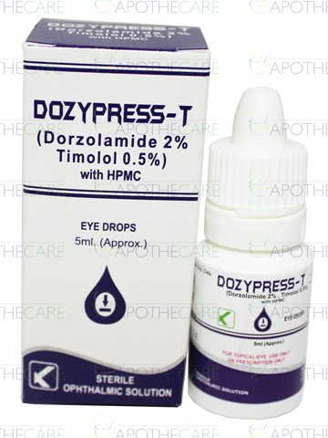 Product Name: Dozypress-T Eye Drops 5mlProduct Form: DropsPack Size: 5mlMarketed By: Kobec health SciencesGeneric Category: Anti-GlaucomaIngredients: Dorzolamide: 2%, Timolol Maleate: 0.5%