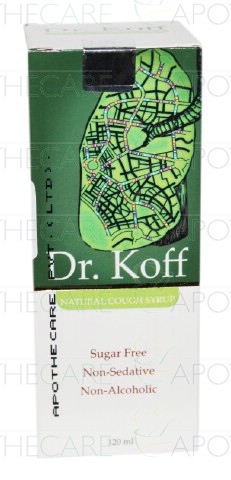 Product Name: Dr.Koff Cough Syp 120mlProduct Form: SyrupPack Size: 120mlMarketed By: HIMONT PHARMA (PVT) LTDGeneric Category: Cough SuppressantIngredients: Each 5ml contains: Terminalia bellirica 51mg, Solanum xanthocarpum 61.2mg, Adhatoda vasica 40.8mg, Glycyrrhiza glabra 61.2mg, Ocimum sanctum 61.2mg, Yavakshar 4.11mg, Bharangyadi Kwath 51.326mg