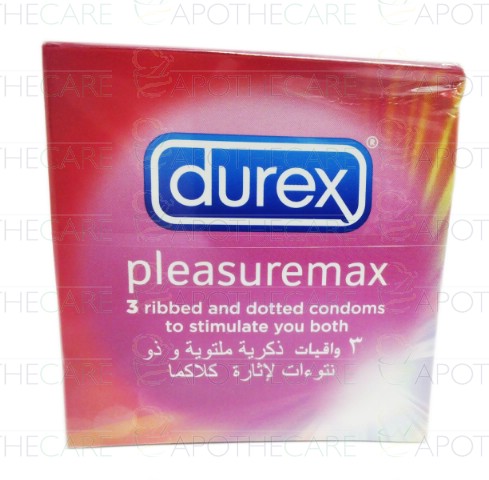 Product Name: Durex Pleasuremax Condom 3'sProduct Form: CondomPack Size: 3'sMarketed By: RECKITT BENCKISER PAKISTAN LTD
