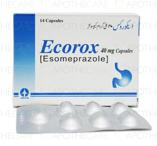 Product Name: Ecorox Cap 40mg 2x7'sProduct Form: CapsulesPack Size: 2x7'sMarketed By: ATCO LABORATORIES (PVT) LTDGeneric Category: Anti-Ulcerant Ingredients: Esomeprazole