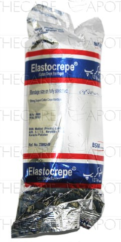 Product Name: Elastocrepe Cotton Crepe Bandages 10cmX4.5mProduct Form: Cotton Crepe BandagesPack Size: Stretched Single Bandage 10cmX4.5mMarketed By: BSN Medical (Pvt) LtdGeneric Category: Surgical Products