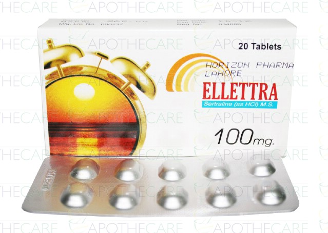 Product Name: Ellettra Tab 100mg 2x10'sProduct Form: TabletsPack Size: 2x10'sMarketed By: Wilshire Laboratories (Pvt) LtdGeneric Category: Anti-DepressantIngredients: Sertraline HCl