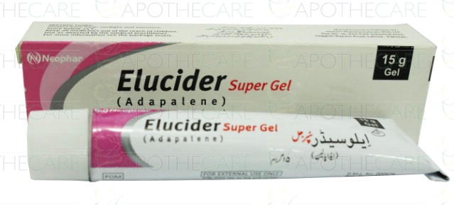 Product Name: Elucider Super Gel 0.3% 15gProduct Form: GelPack Size: 15gMarketed By: Neophar HeakthCare Pakistan (pvt) LtdGeneric Category: Anti-acneIngredients: Adapalene