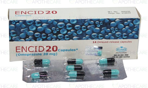 Product Name: Encid 20 Cap 20mg 2x7'sProduct Form: CapsulesPack Size: 2x7'sMarketed By: WILSON'S PHARMACEUTICALSGeneric Category: Anti-UlcerantIngredients: Omeprazole
