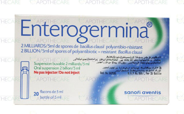 Product Name: Enterogermina Oral Susp 10'sProduct Form: SuspensionPack Size: 10'sMarketed By: SANOFI AVENTIS Generic Category: Intestinal disordersIngredients: Bacillus Clausii