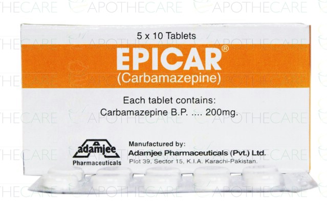 Product Name: Epicar Tab 200mg 5x10'sProduct Form: TabletsPack Size: 5x10'sMarketed By: Adamjee Pharma ServicesGeneric Category: Anti-EpilepticIngredients: Carbamazepine