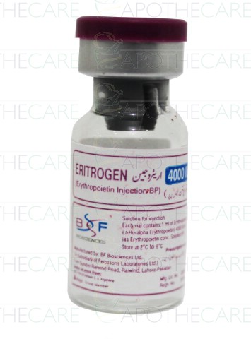 Product Name: Eritrogen Inj 4000IU 1VialProduct Form: InjectionPack Size: 1 VialMarketed By: BF BIOSCIENCES LIMITEDGeneric Category: HAEMOTOPOIETIC Ingredients: ErythropoietinStorage Condition: Store at 2 - 8°C (Do not freeze)