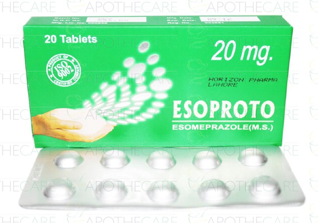 Product Name: Esoproto Tab 20mg 2x10'sProduct Form: TabletsPack Size: 2x10'sMarketed By: Wilshire Laboratories (Pvt) LtdGeneric Category: Anti-UlcerantIngredients: Esomeprazole Magnesium