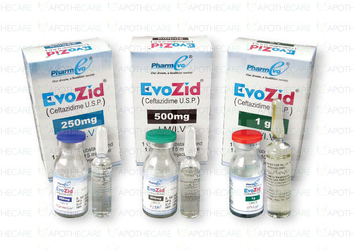 Product Name: Evozid IV/IM Inj 250mg 1VialProduct Form: InjectionPack Size: 1VialMarketed By: PHARM-EVO (PVT) LTD.Generic Category: CEPHALOSPORIN ANTIBIOTICIngredients: Ceftazidime