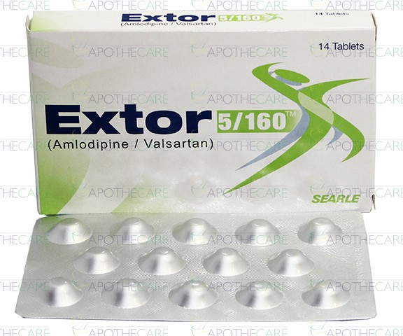 Product Name: Extor Tab 5mg/160mg 14'sProduct Form: TabletsPack Size: 14'sMarketed By: SEARLE PAKISTAN Generic Category: Anti-HypertensiveIngredients: Amlodipine 5mg ,Valsartan 160mg