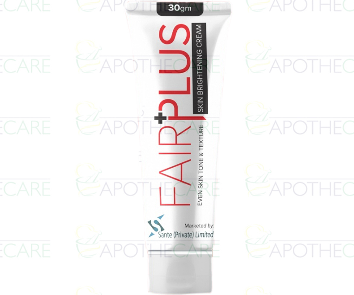 Product Name: Fairplus Cream 30gmProduct Form: CreamPack Size: 30gmManufacturer: Sante (pvt) ltdGeneric Category: Skin Brightening CreamDiscription: Even Skin Tone and Texture