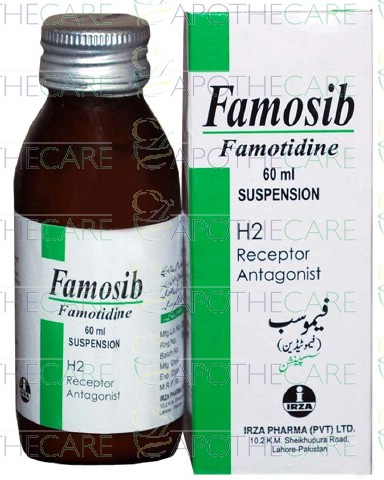 Product Name: Famosib Susp 10mg/5ml 60mlProduct Form: SuspensionPack Size: 60mlMarketed By: IRZA PHARMA PVT LTDGeneric Category: ANTI-ULCERANTIngredients: Famotidine