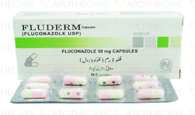 Product Name: Fluderm Cap 50mg 10'sProduct Form: CapsulesPack Size: 10'sMarketed By: Nabiqasim Industries (Pvt) ltdGeneric Category: Anti-FungalIngredients: Fluconazole