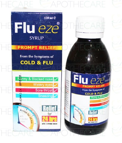 Product Name: Flueze Syp 120mlProduct Form: SyrupPack Size: 120mlMarketed By: Werrick PharmaceuticalsGeneric Category: Cold Preparations Without Anti-InfectivesIngredients: Each 5ml contains Pseudoephedrine 15mg, Mepyramine Maleate 6.25mg, Pheniramine Maleate 6.25mg