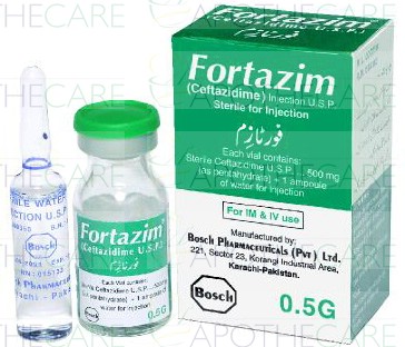 Product Name: FORTAZIM Inj 0.5g 1 VialProduct Form: InjectionPack Size: 1 VialMarketed By: BOSCH PHARMACEUTICALS (PVT) LTDGeneric Category: CEPHALOSPORIN ANTIBIOTICIngredients: Ceftazidime