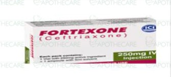 Product Name: Fortexone IV Inj 250mg 1VialProduct Form: InjectionPack Size: 1VialMarketed By: ICI PAKISTAN LTD Generic Category: Cephalosporin AntibioticIngredients: Ceftriaxone