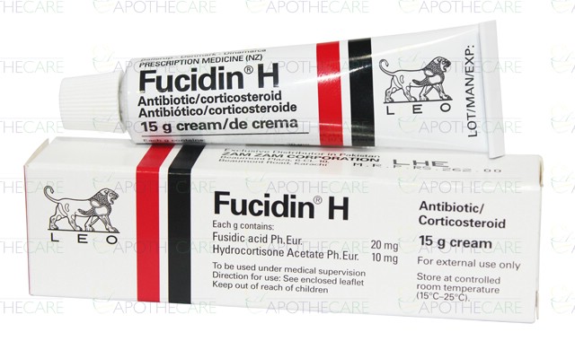 Product Name: Fucidin H Cream 15gmProduct Form: CreamPack Size: 15gmMarketed By: leo Pharmaceuticals Products - DenmarkGeneric Category: Anti-Bacterial + CorticosteroidIngredients: Fusidic Acid 2%, Hydrocortisone Acetate 1%