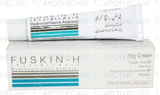 Product Name: Fuskin - H Cream 15gmProduct Form: CreamPack Size: 15gmMarketed By: PHARMA HEALTH PAKISTAN (PVT.) LTDGeneric Category: Corticosteroid/ Anti-BacterialIngredients: Fusidic Acid2%,Hydrocortisone Acetate 1%