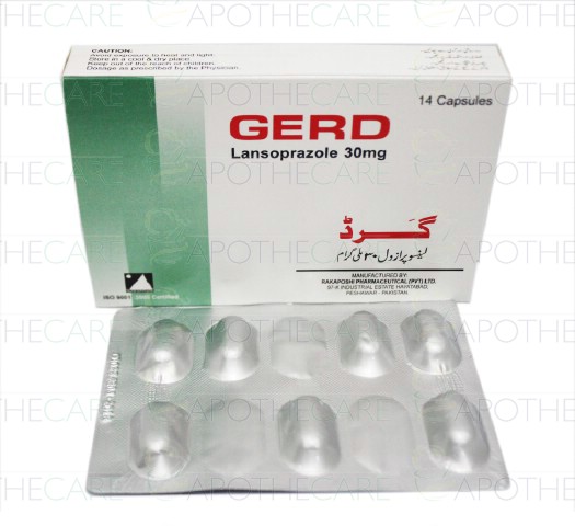 Product Name: Gerd Cap 30mg 14's 261 PacksProduct Form: CapsulesPack Size: 261 Packs of 14'sMarketed By: Rakaposhi PharmaceuticalsGeneric Category: Anti-UlcerantIngredients: Lansoprazole
