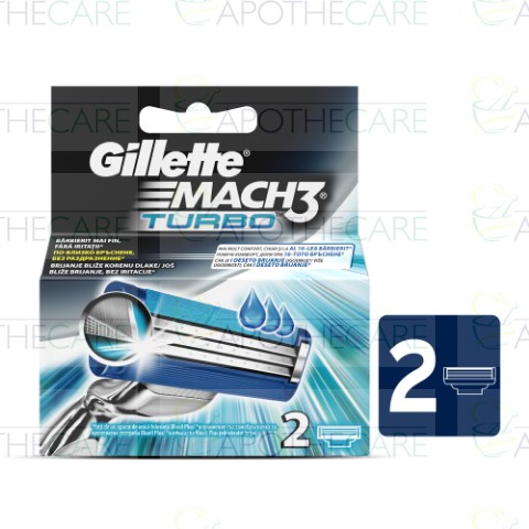 Mach3 Turbo with 3 Advanced Anti-Friction blades and 10 Comfort Guard Microfins, offers a closer shave and reduces irritation.