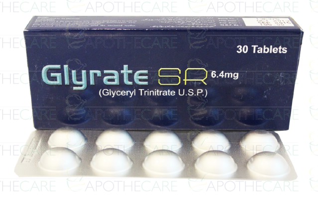 Product Name: Glyrate SR Tab 6.4mg 30'sProduct Form: TabletsPack Size: 30'sMarketed By: Maple Pharmaceutical (Pvt) LtdGeneric Category: NitratesIngredients: Glyceryl Trinitrate