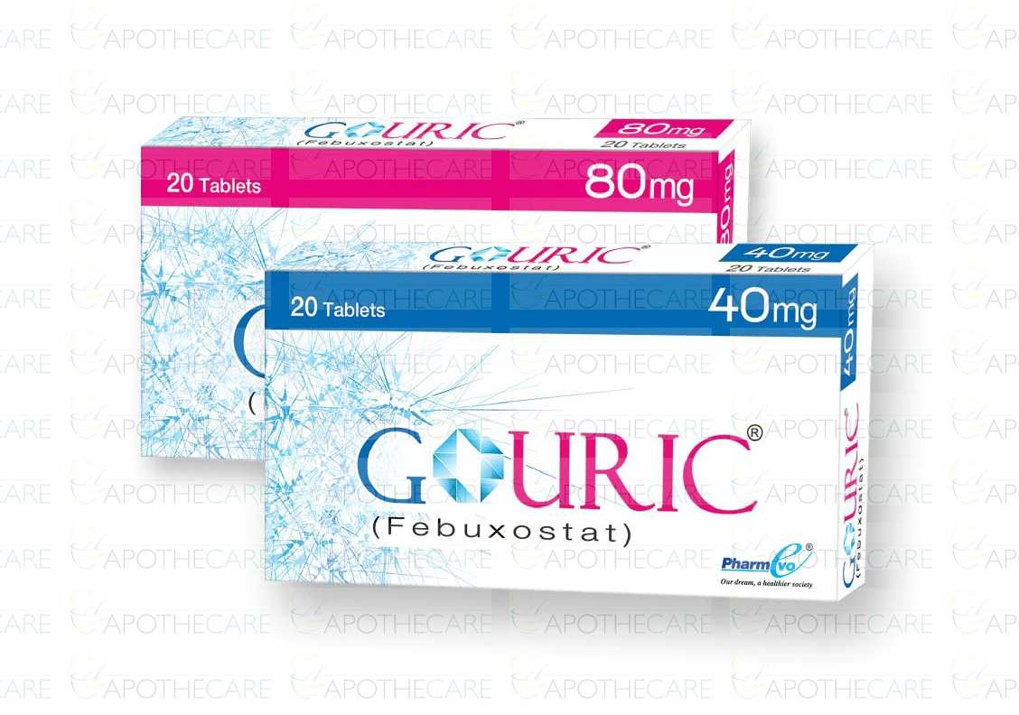 Product Name: GOURIC Tab 80mg 20'sProduct Form: TabletsPack Size: 20'sMarketed By: PHARM-EVO (PVT) LTD.Generic Category: ANTI-GOUTIngredients: Febuxostat