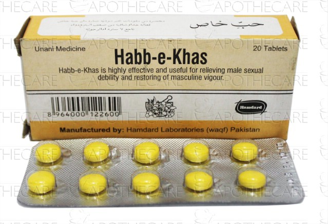 Product Name: Habb-E-Khas Tab 20'sProduct Form: TabletsPack Size: 20'sMarketed By: Hamdard Laboratories (Waqf) Pakistan