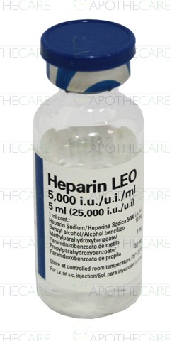 Product Name: Heparin Inj 5000IU 1VialProduct Form: InjectionPack Size: 1VialMarketed By: leo Pharmaceuticals Products - DenmarkGeneric Category: Anti-platelet aggregation Ingredients: Heparin Sodium